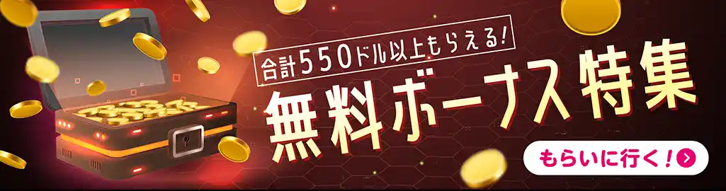 一定の資金を入金することでボーナスマネーを受け取ることができるのが入金特典ボーナスです。 たとえば、入金ボーナス100%最大$500の場合は、$500を入金するとボーナスマネー$500が付与されて軍資金が倍の状態でスタートすることができます。 残高に余裕がある分、大当たりを狙いやすくなります。高額ボーナスをゲットして、勝利を目指しましょう。